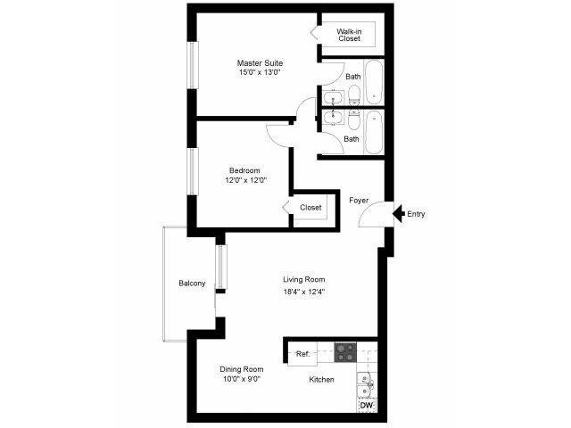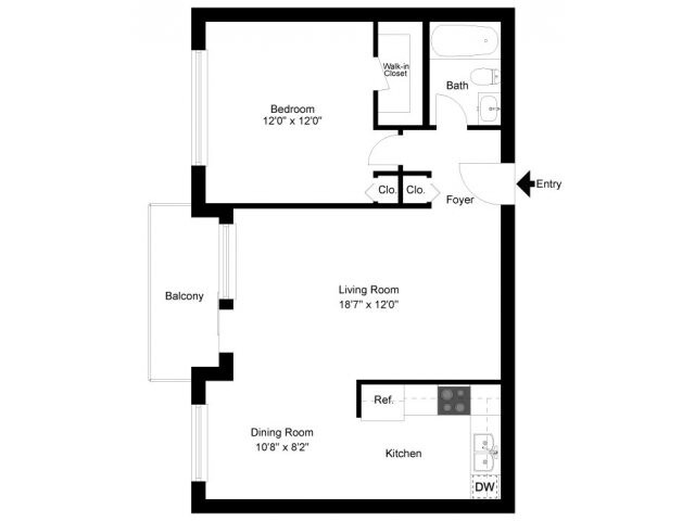 Modelo de apartamento: One Bedroom Regular1 Dormitorio, 1 Baño, 920 sq ftNo Disponible![]()
