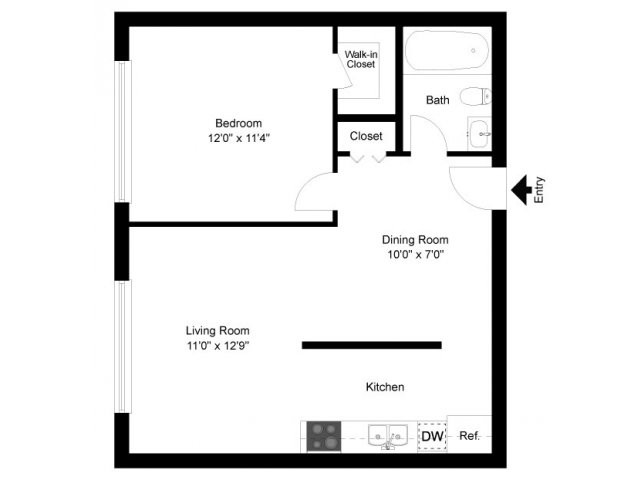 Modelo de apartamento: Efficiency1 Dormitorio, 1 Baño, 400 sq ftNo Disponible![]()