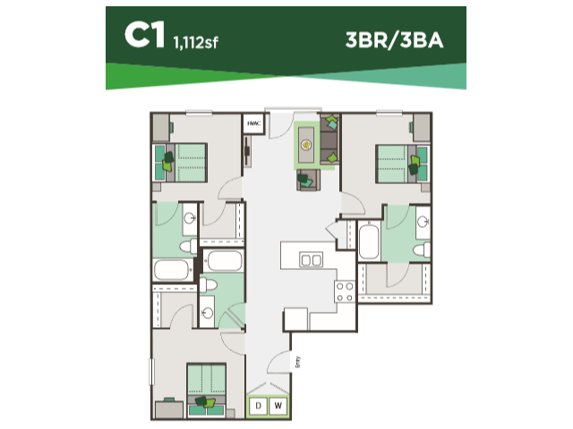 Modelo de apartamento: C2Desde $8253 Dormitorios, 3 Baños, 1248 sq ftDisponible Ahora![]()