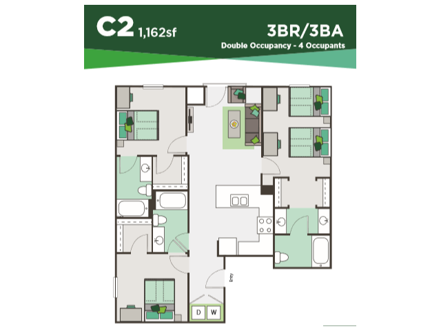 C2 - Plano 1 Unidad de apartamento: Double Occupancy - Shared Bedroom & BathModelo de apartamento: C2$8253 Dormitorios, 3 Baños, 1248 sq ftDisponible AhoraUnidad de apartamento: Private BedroomModelo de apartamento: C2$1,4153 Dormitorios, 3 Baños, 1248 sq ftDisponible AhoraPlano: C1