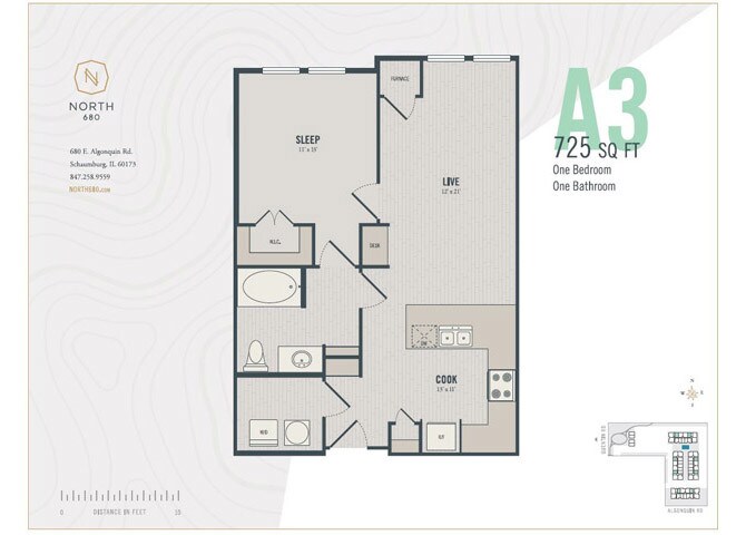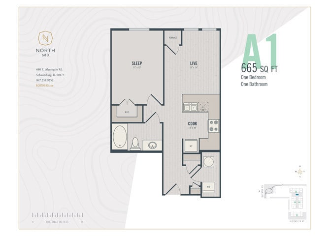 Con una ubicación ideal en los suburbios del noroeste de Chicago, North 680 no es la típica residencia suburbana con jardín. North 680 es uno de los complejos de apartamentos de lujo más nuevos en Schaumburg. Estamos junto a fantásticas tiendas y restaurantes en Woodfield Mall, a pasos de algunas de las principales empresas del mundo, y con fácil acceso a la autopista interestatal, el tren suburbano y el aeropuerto O'Hare. Nuestras amplias residencias de una y dos habitaciones tienen acabados lujosos, vestidores, cocinas bien equipadas y lavadoras y secadoras. Las comodidades incluyen una piscina climatizada estilo centro turístico, un parque para perros cercado y un gimnasio con estudio de yoga. North 680 ofrece un nivel de emoción que generalmente no se ve en un ambiente cómodo y tranquilo.