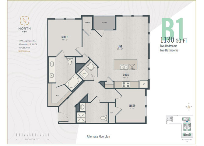 Modelo de apartamento: B1 Plus - Two Bedroom2 Dormitorios, 2 Baños, 1130 sq ftDisponible Ahora![]()
