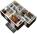 Modelo de apartamento: 111 Dormitorio, 1 Baño, 820 sq ftDisponible Ahora![]()