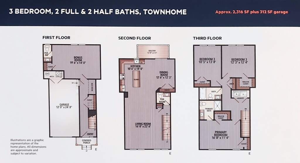 Three Bedroom Reserve Townhome - C Model - Plano 1 Three Bedroom Reserve Townhome - B Model