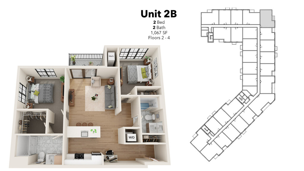 2 Dormitorios, 2 Baños, 1067 pies²Disponible AhoraGalería del Modelo