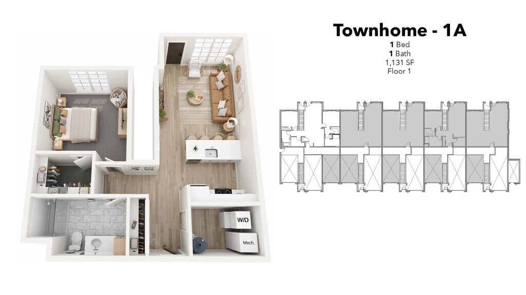 Modelo de apartamento: Townhome - 1ADesde $1,4501 Dormitorio, 1 Baño, 800 sq ftDisponible September 1, 2026PlanosFotos![]()