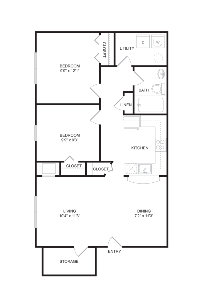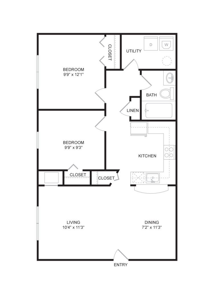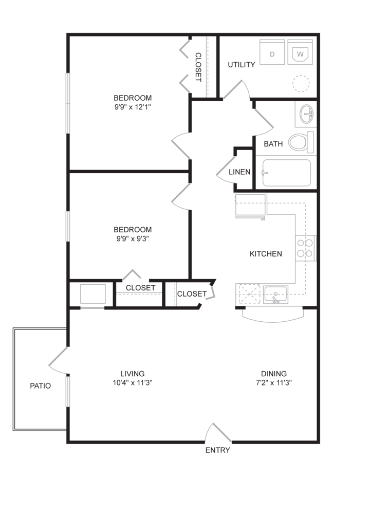 2 Dormitorios, 1 Baño, 846 pies²Disponible AhoraGalería del Modelo