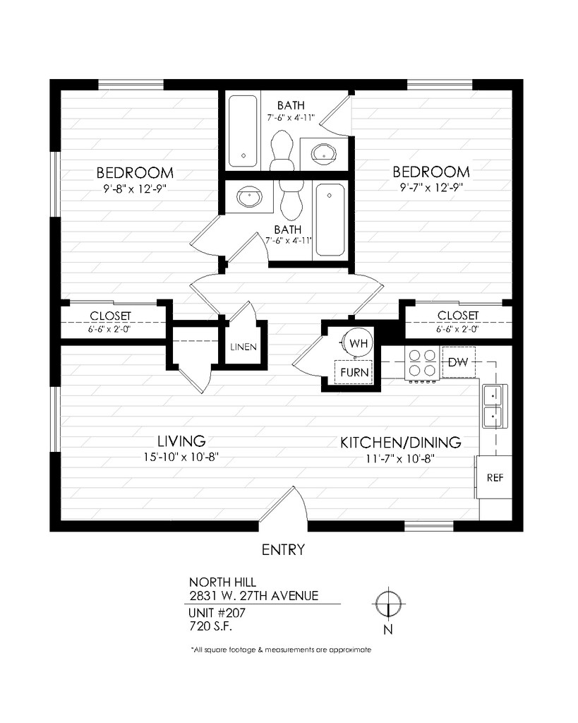 2 Bedroom x 1 Bath - Plano 2 2 Bedroom x 2 Bath