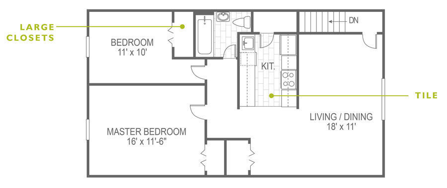Modelo de apartamento: 1 Bed | 1 Bath1 Dormitorio, 1 Baño, 551-650 sq ftNo Disponible1 Bed | 1 Bath - Plano 1 2 Dormitorios