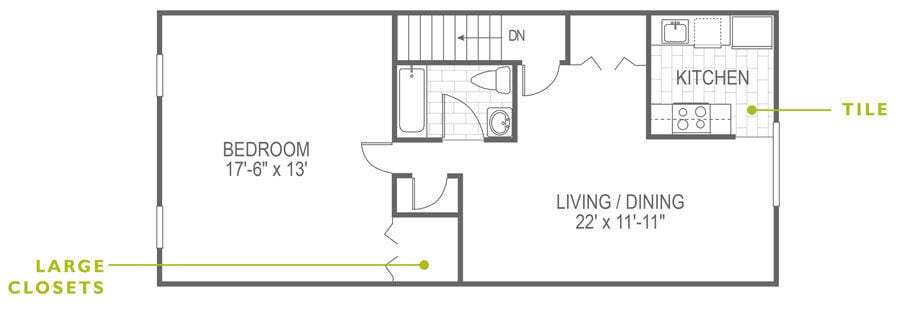 1 Dormitorio, 1 Baño, 551-650 pies²Galería del Modelo
