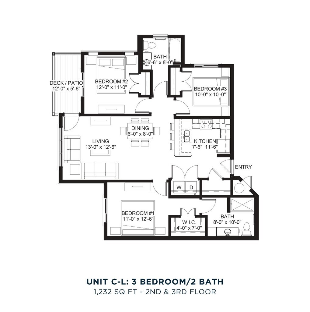 3 Dormitorios, 2 Baños, 1232 pies²Disponible AhoraGalería del Modelo