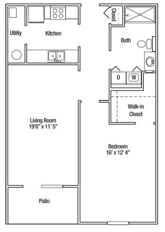 Modelo de apartamento: B$1,2901 Dormitorio, 1 Baño, 824 sq ftNo DisponibleB - Plano 1 2 Dormitorios
