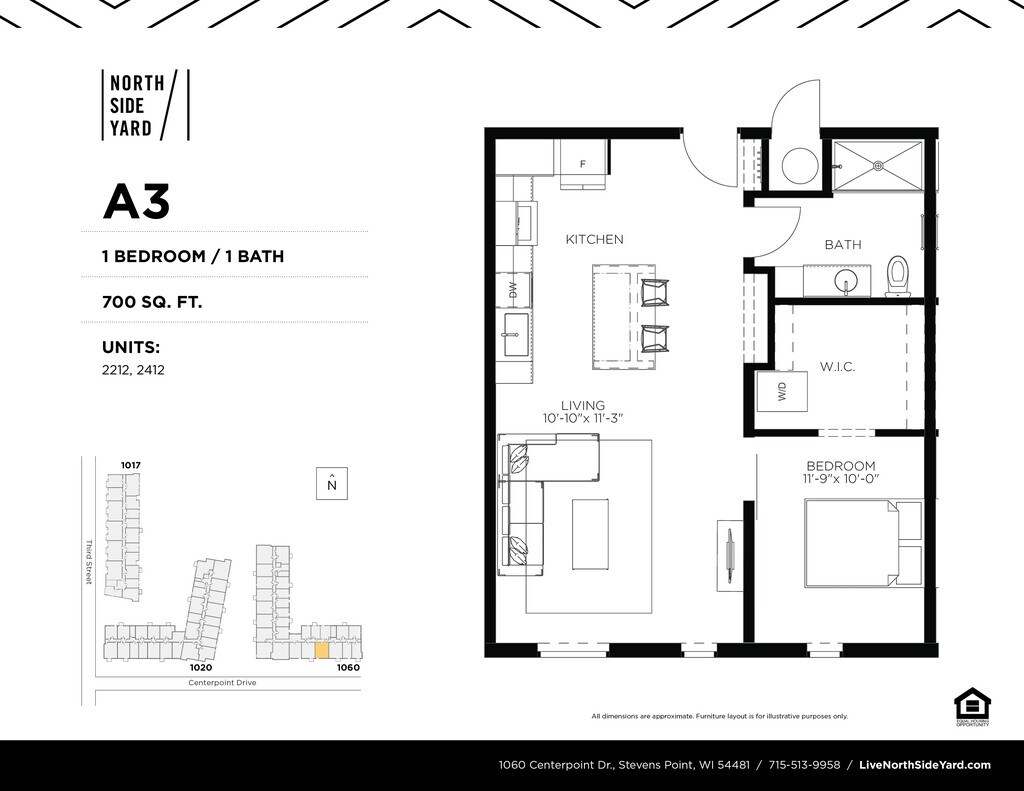 Bienvenido a North Side Yard, ¡el primer complejo de apartamentos residenciales de Stevens Point ubicado en el centro de la ciudad! North Side Yard cuenta con 159 apartamentos residenciales que van desde estudios a apartamentos de 2 habitaciones. Los edificios seguros tienen un amplio espacio de almacenaje para bicicletas y están a solo unos pasos del sendero recreativo de la ribera de Wisconsin River. El edificio está a una poca distancia a pie de la plaza pública (donde el mercado de productores toma lugar) y las atracciones históricas de Main Street. El edificio cuenta con un gimnasio en el lugar y sala comunitaria para residentes. Todos los apartamentos están equipados con lavadora y secadora, lavaplatos, y apartamentos seleccionados tienen balcones. Un número limitado de nuestros estudios también tienen camas Murphy. Consulta acerca de los apartamentos completamente amueblados. North Side Yard es una propiedad que admite mascotas.
