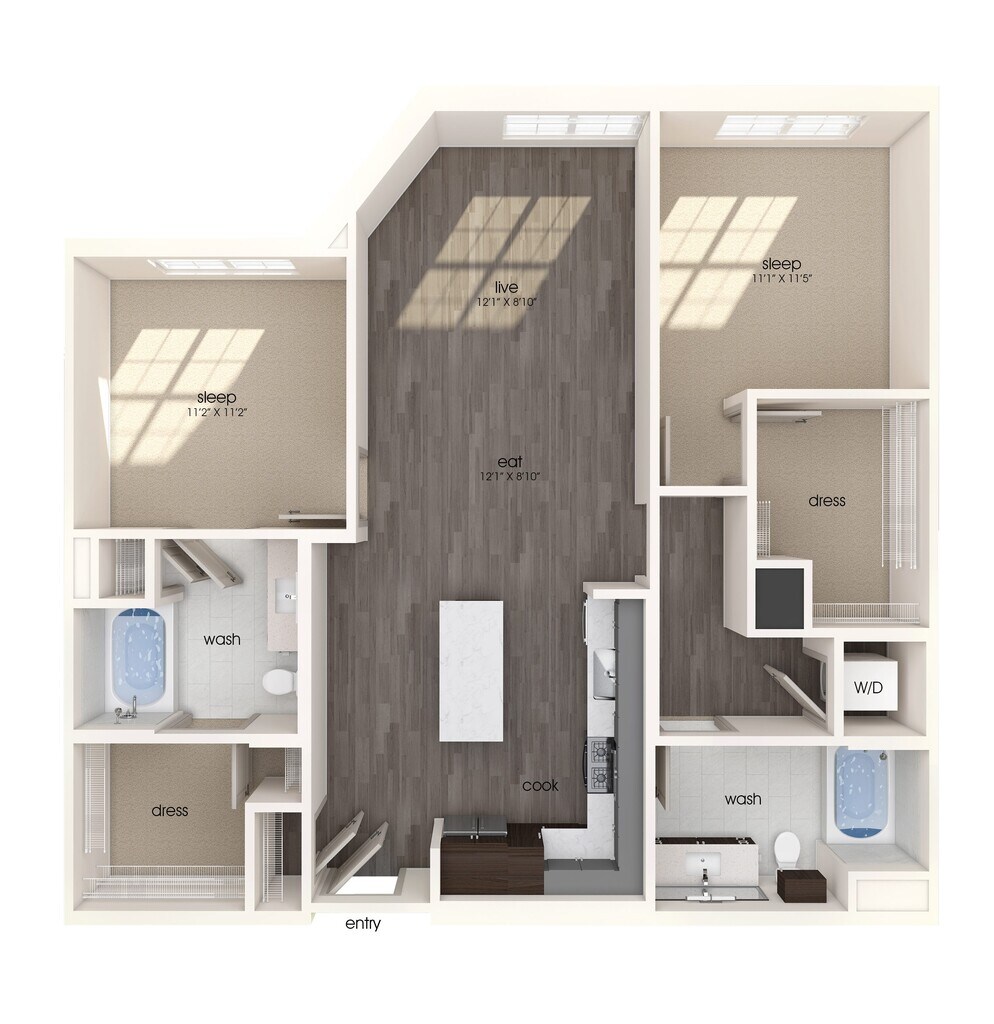 2 Dormitorios, 2 Baños, 1161 pies²Disponible AhoraGalería del Modelo