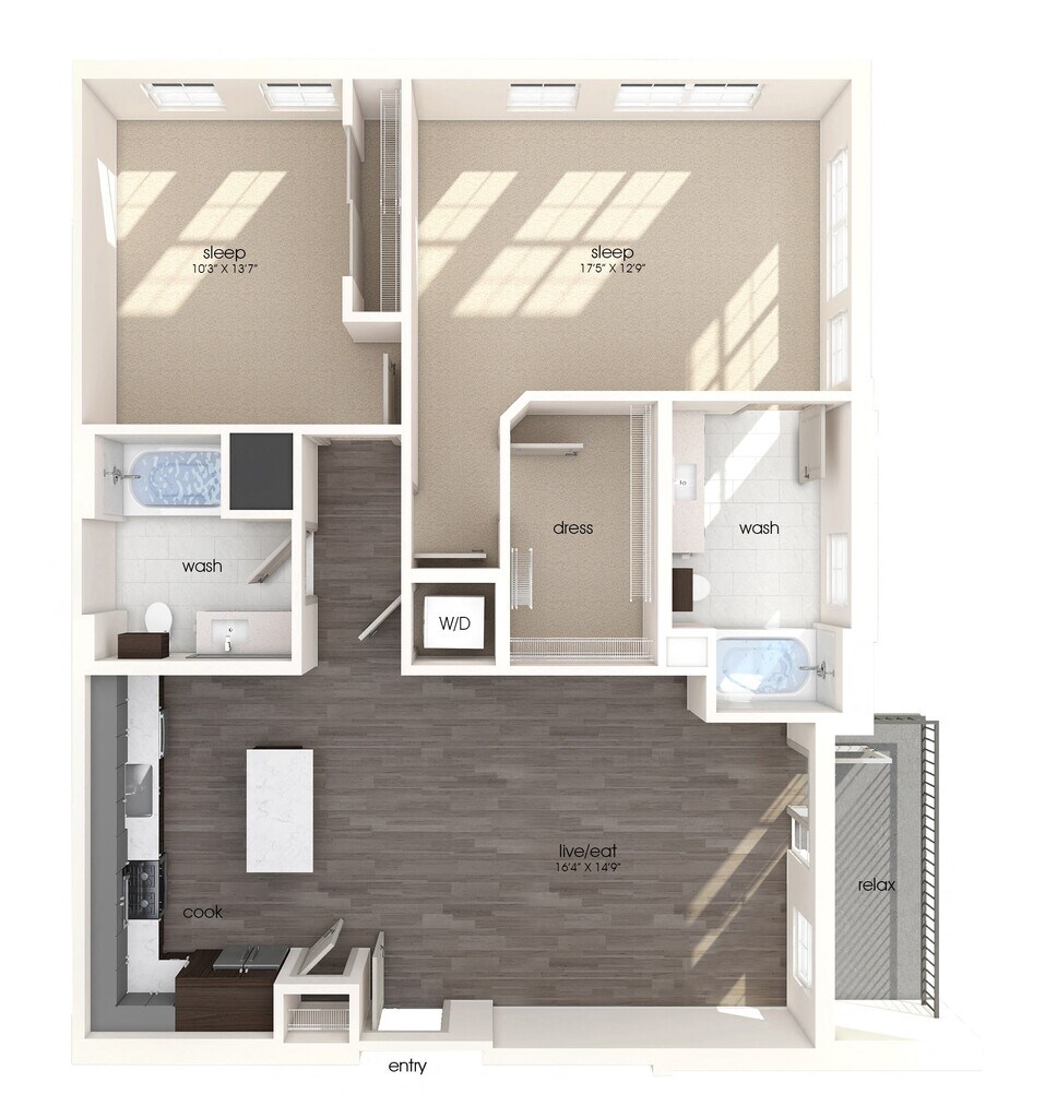 1 Dormitorio, 1 Baño, 779-780 pies²Disponible AhoraGalería del Modelo