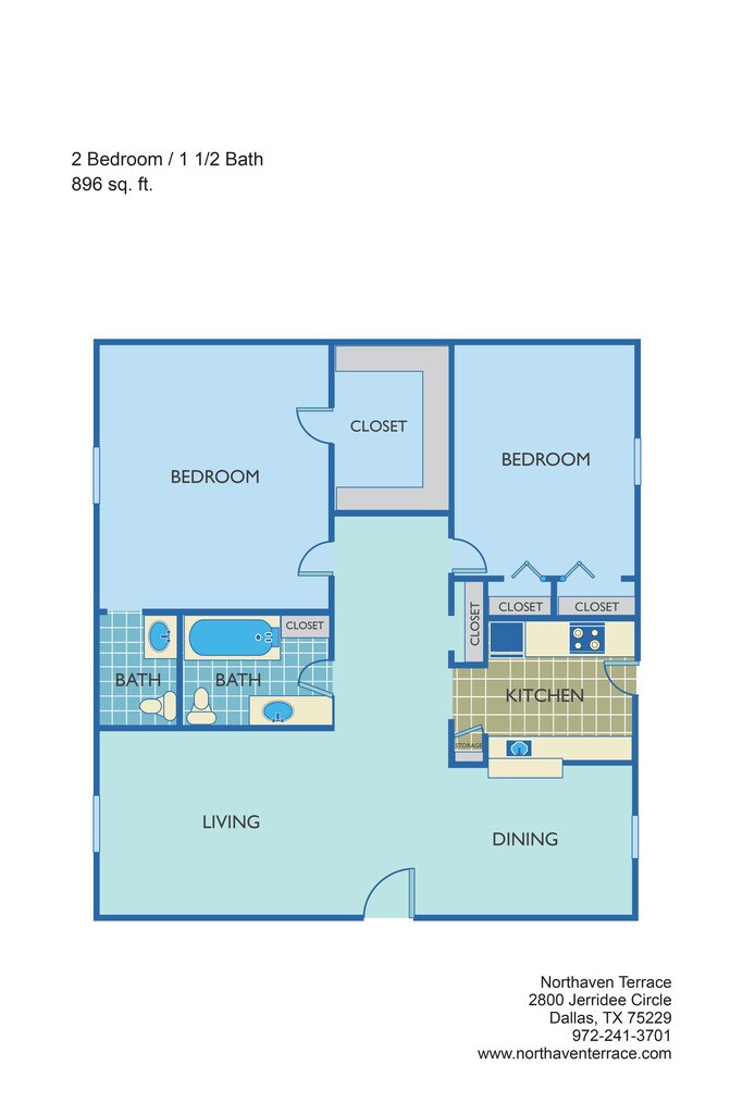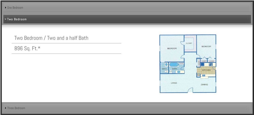 Modelo de apartamento: 2 Bedroom + 1.5 Bath2 Dormitorios, 1.5 Baños, 896 sq ftNo Disponible![]()