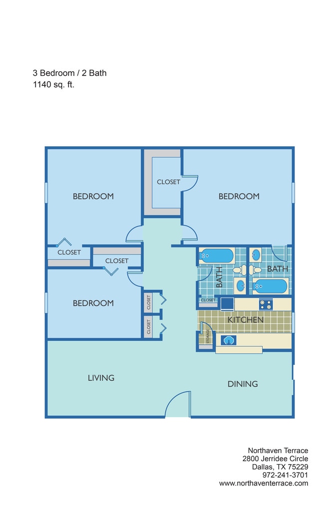 Modelo de apartamento: 3 Bedroom + 2 Bath3 Dormitorios, 2 Baños, 1140 sq ftNo Disponible![]()