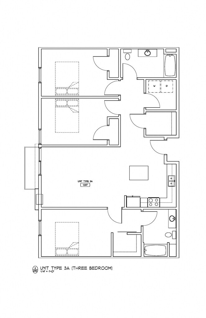 2B/2B (has HCA) - Plano 1 3 Dormitorios