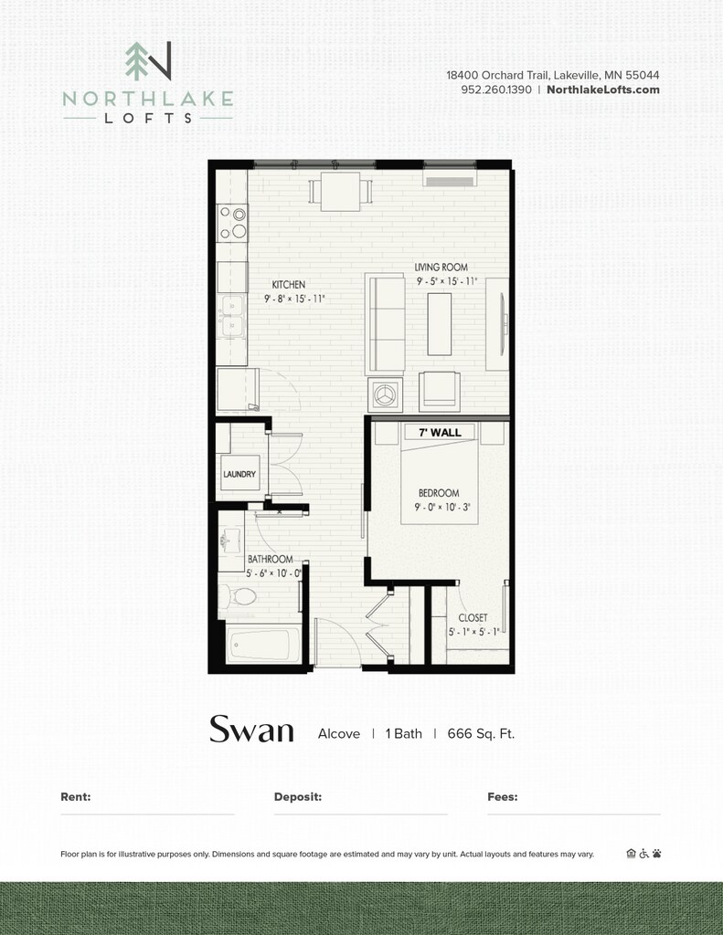 Modelo de apartamento: SwanDesde $1,493Estudio, 1 Baño, 666 sq ftDisponible AhoraLos planos son representaciones artísticas. Todas las dimensiones son aproximadas. El producto y las especificaciones reales pueden variar en tamaño o detalle. No todas las características están disponibles en cada vivienda en alquiler. Por favor, consulta con un representante para obtener más detalles.