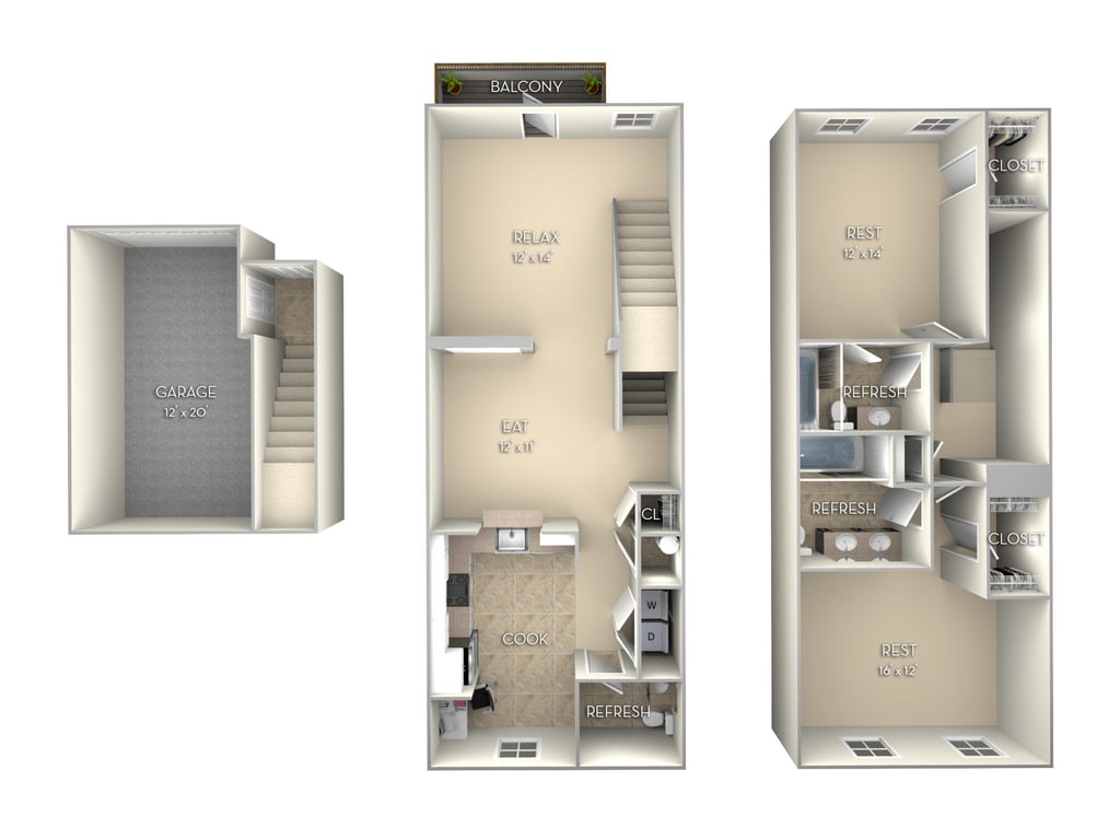 2 Dormitorios, 2.5 Baños, 1480 pies²Disponible AhoraGalería del Modelo