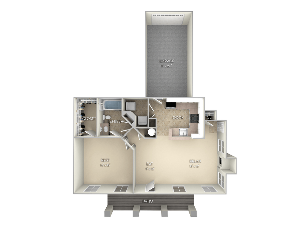 Modelo de apartamento: AugustineLlame para Precios1 Dormitorio, 1 Baño, 1120 sq ft![]()