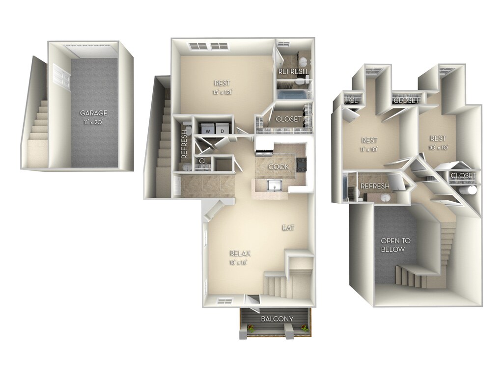 Modelo de apartamento: Boca Grande Town HomeDesde $2,2972 Dormitorios, 2.5 Baños, 1480 sq ftDisponible Ahora![]()