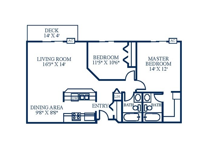 1 Dormitorio, 2 Baños, 1014 pies²Precio Mensual TotalDisponible AhoraGalería del Modelo