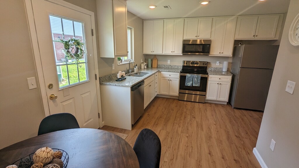 Northridge Place offers convenience and affordability with its three bedroom, one and half bath townhomes. The main level includes a large kitchen with appliances, space for in-unit washer and dryer hookups, an updated half bath and a spacious living area. The second level includes three bedrooms with ceiling fans and a full bathroom. A coat closet on the main level and linen closet on the second level offer extra storage. Patio is located off the kitchen. Pet friendly dogs and cats under 45lbs accepted with non-refundable deposit and monthly fee per animal (limit of 2 per unit). Tenant pays utilities, excluding trash. No application fees, we do run credit and background checks. Renters insurance is required. A security deposit is due within 24 hours of the application being approved to hold a unit. Property owner pays for trash. Tenant pays for electric, water and sewer and one-time inspection fee. Renters insurance is required.