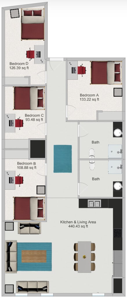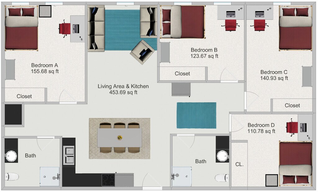 Historical, family owned building with on-site management and maintenance. Lots of size and layout options with apartments ranging from historical, loft style units with exposed brick walls and beams to newly built, modern units. Conveniently located near campus just steps from Bierman athletic facilities. Our apartments are leased by the full unit, giving your group flexibility to live how you want. You can have one resident per bedroom or share bedrooms to make rent more affordable. The prices shown here are estimated per-bedroom rates based on splitting the total unit rent evenly among residents or splitting evenly with shared rooms. Each resident signs an individual rent addendum agreeing to their portion of the rent. That means you only pay for your share, never the full unit.