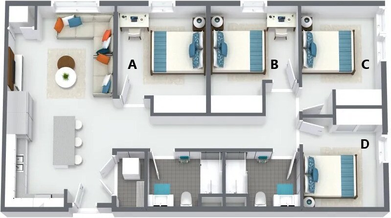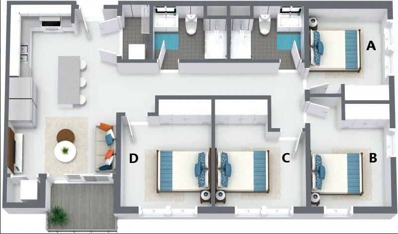 Modelo de apartamento: 3br CDesde $3753 Dormitorios, 2 Baños, 882 sq ftDisponible September 1, 2026![]()
