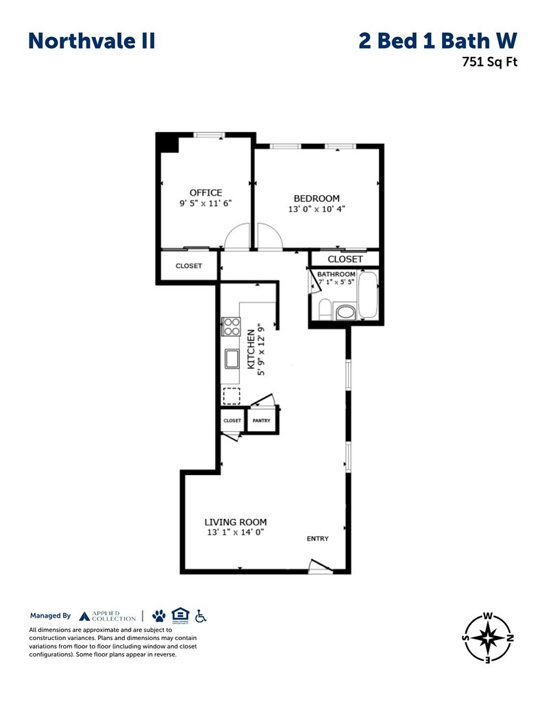 Modelo de apartamento: 2 Bed 1 Bath RLlame para Precios2 Dormitorios, 1 Baño, 700 sq ftNo Disponible![]()