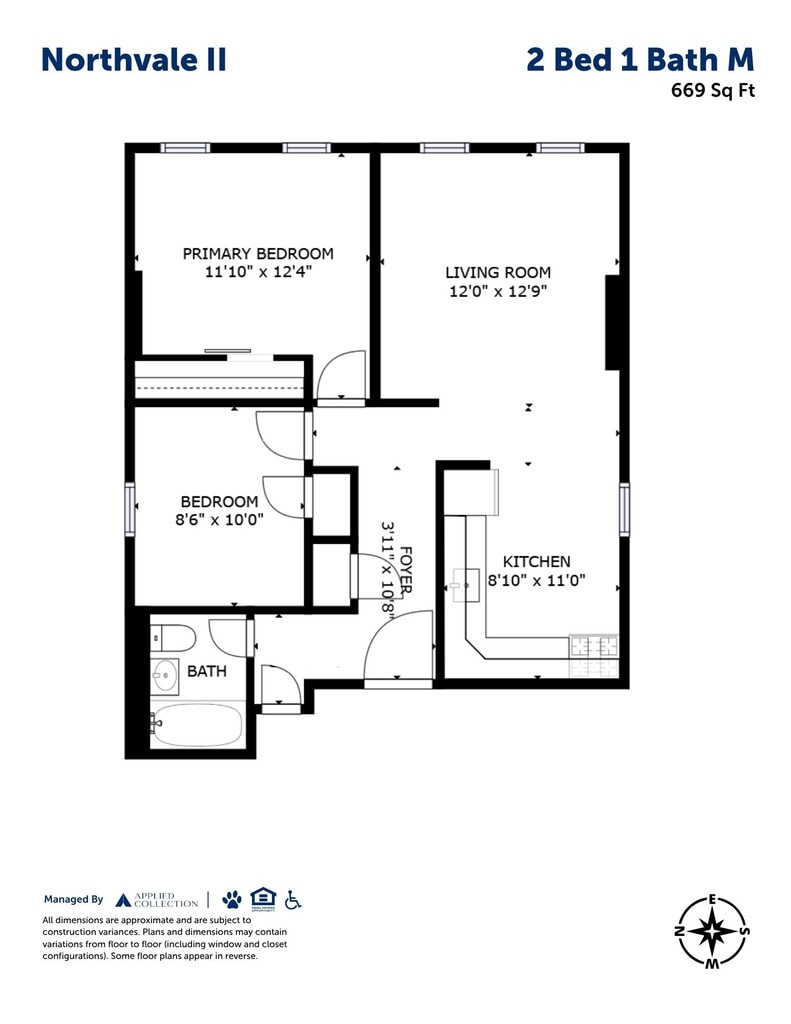 Modelo de apartamento: 2 Bed 1 Bath MLlame para Precios2 Dormitorios, 1 Baño, 669 sq ftNo Disponible![]()