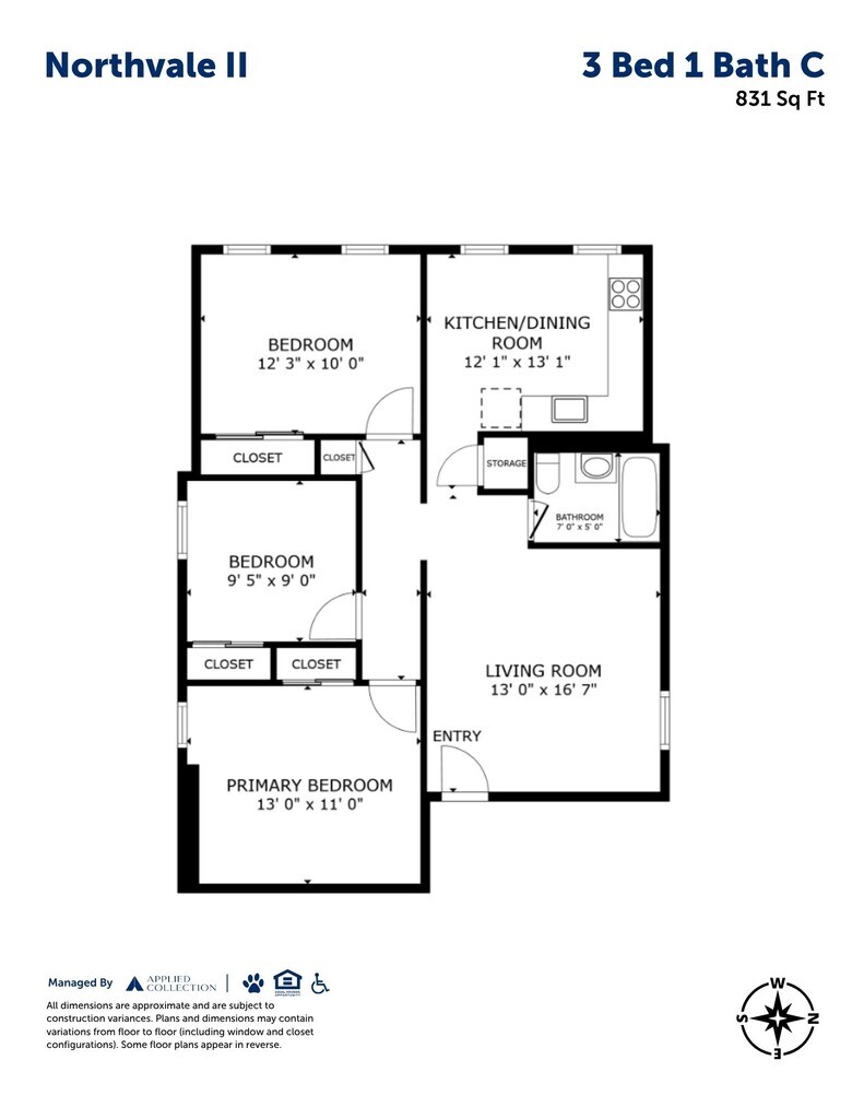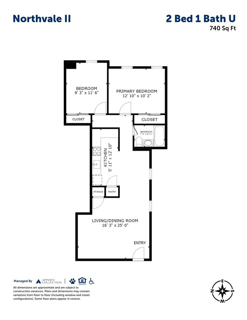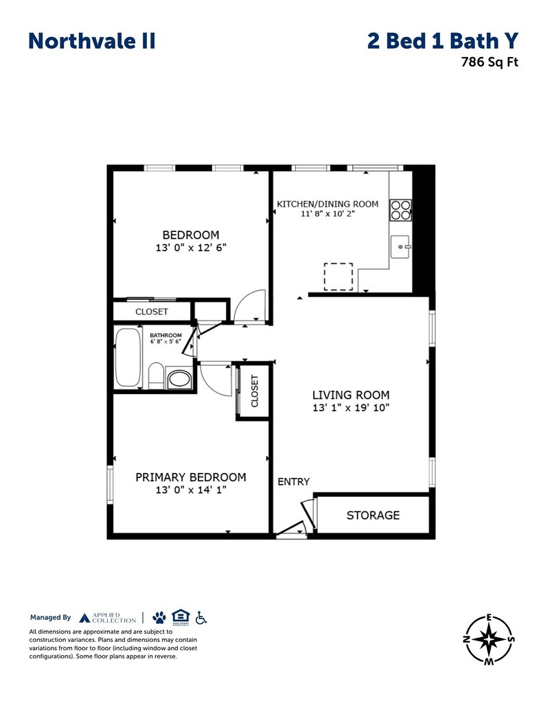 2 Bed 1 Bath E - Plano 2 Bed 1 Bath J