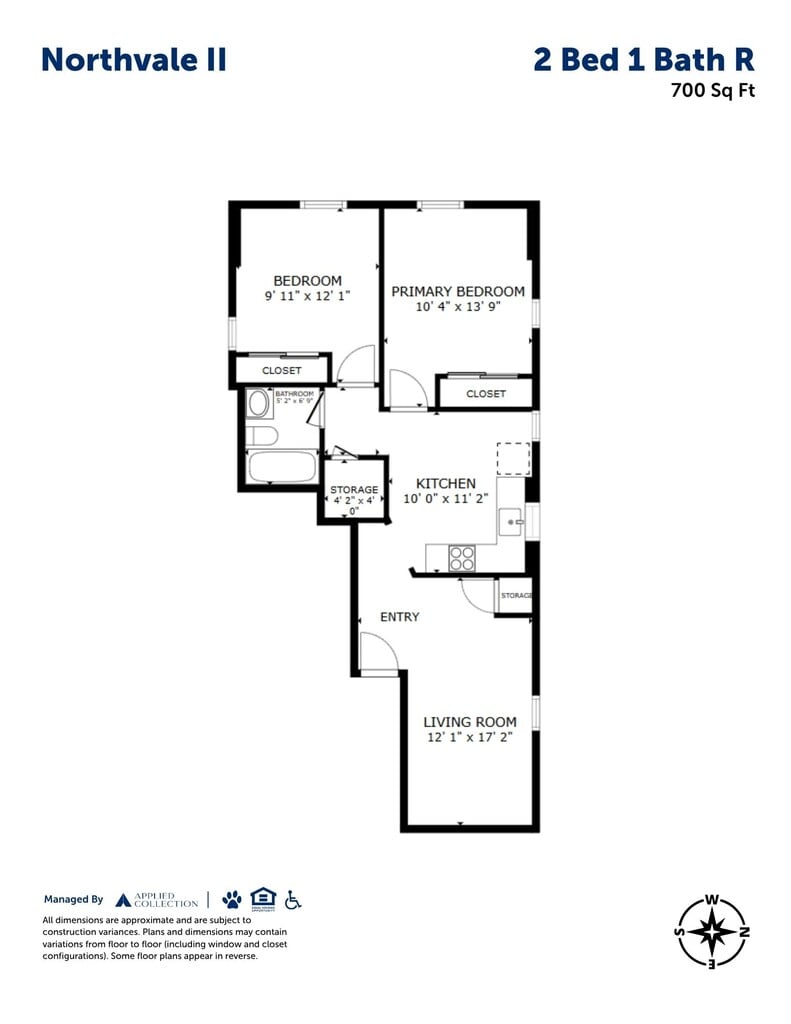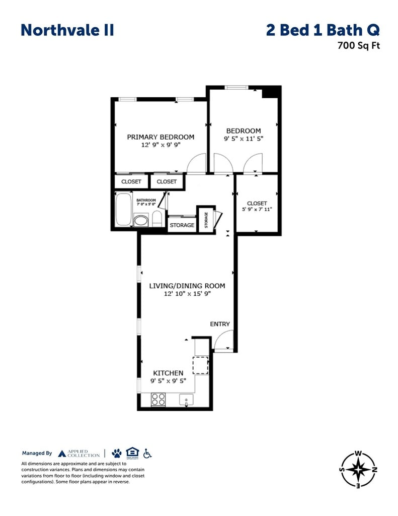 2 Dormitorios, 1 Baño, 700 pies²Galería del Modelo