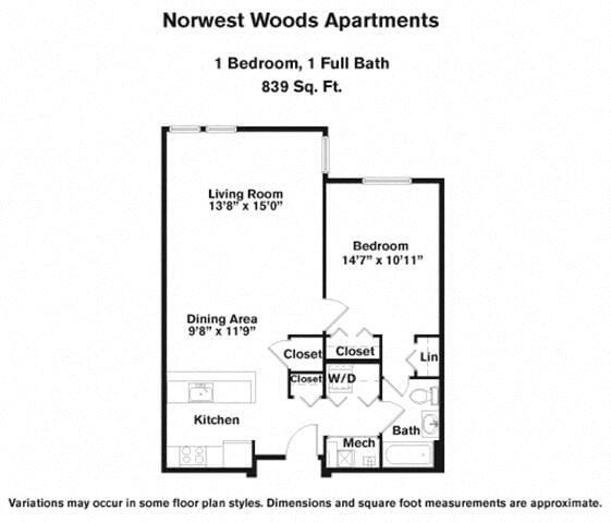 **$1,000 de descuento el primer mes en apartamentos selectos** Norwest Woods incluye lavadoras/secadoras. Se admiten gatos y perros, pero a los últimos se les aplican algunas restricciones. Una vez que conozcas el valor y la comodidad de nuestra propiedad, te darás cuenta de lo que todos nuestros residentes a largo plazo nos han dicho. A saber, que es difícil superar un oasis de 20 acres que combina el tradicional encanto de Nueva Inglaterra, vecinos amables y una lista de comodidades con estilo de vida para mejorar el disfrute del complejo. No están incluidos la calefacción y el agua caliente.