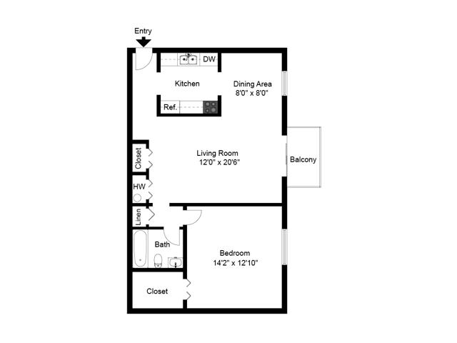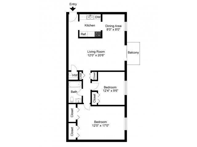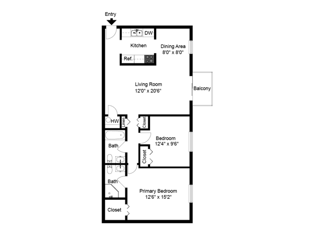 Modelo de apartamento: Two Bedroom2 Dormitorios, 1 Baño, 920 sq ftDisponible Ahora![]()