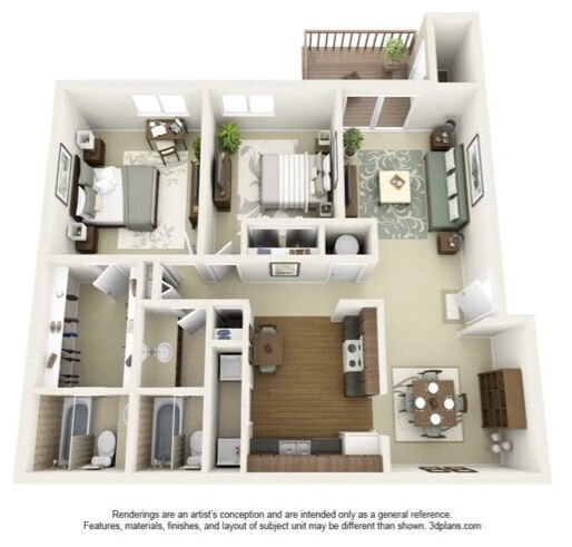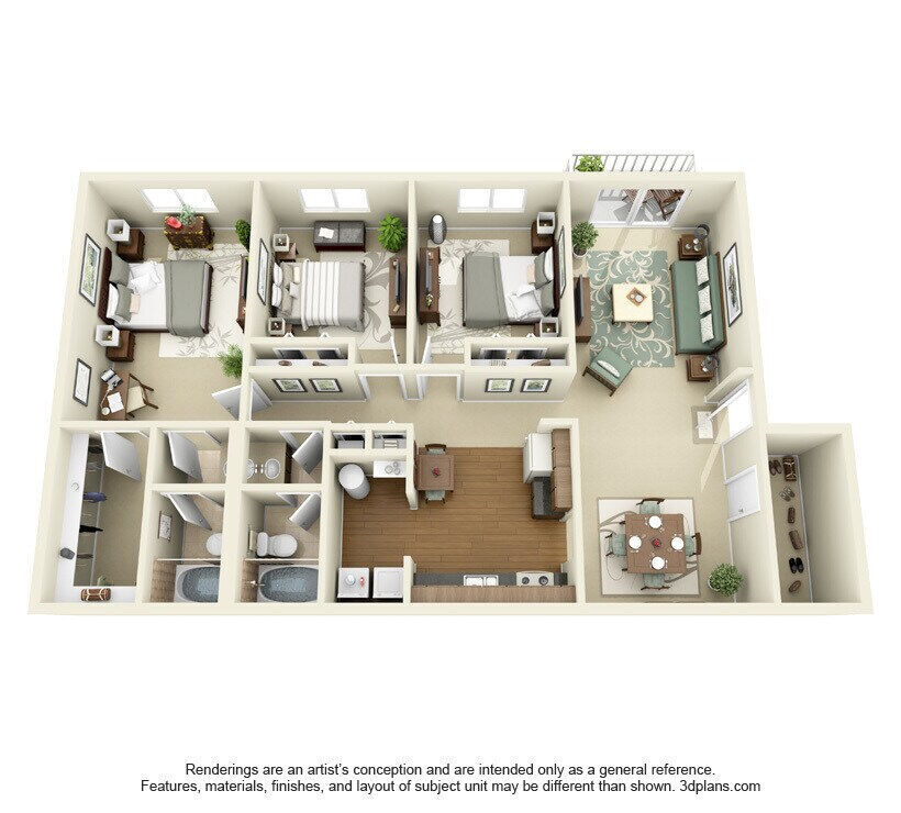 3 Dormitorios, 2 Baños, 1378 pies²Galería del Modelo