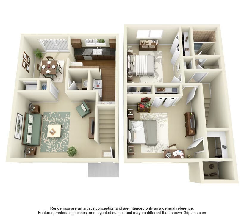 2 Dormitorios, 1.5 Baños, 1158 pies²Disponible AhoraGalería del Modelo