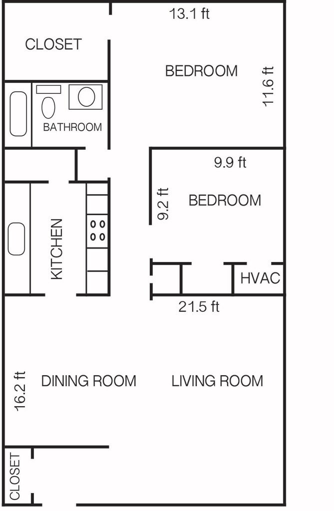 2 Dormitorios, 1 Baño, 900 pies²Galería del Modelo