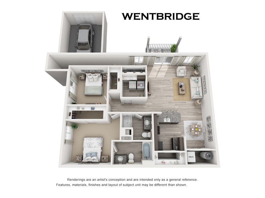 Modelo de apartamento: Wentbridge I$1,3002 Dormitorios, 2 Baños, 1384 sq ftNo Disponible![]()