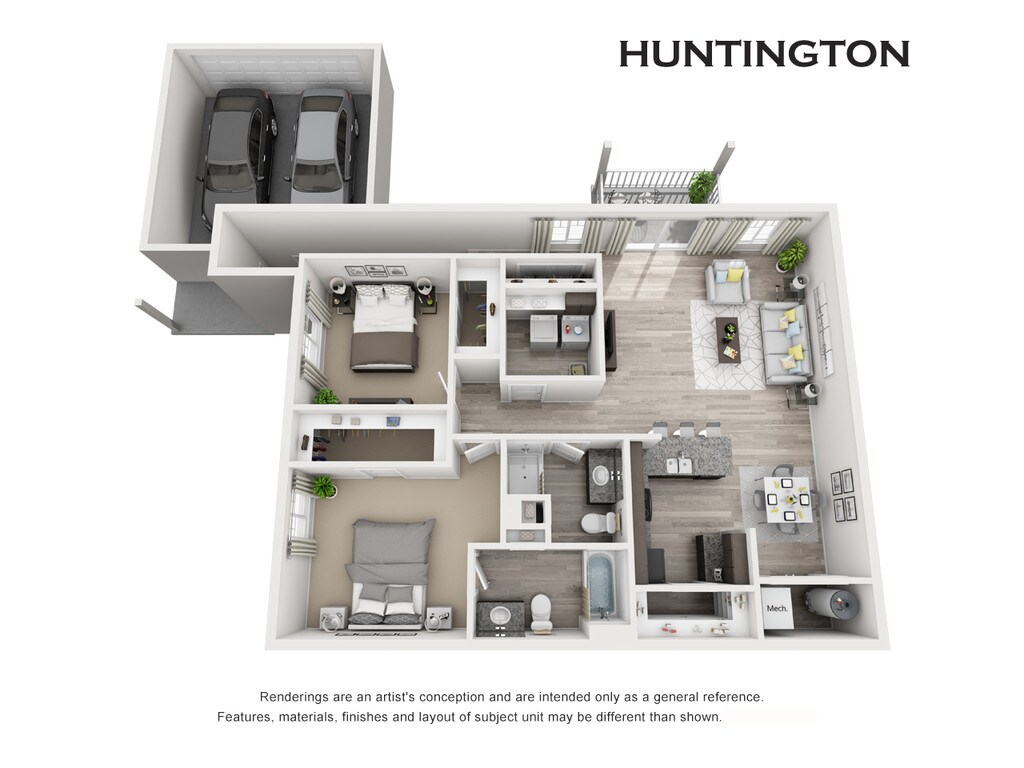 Modelo de apartamento: Huntington$1,4002 Dormitorios, 2 Baños, 1384 sq ftNo Disponible![]()