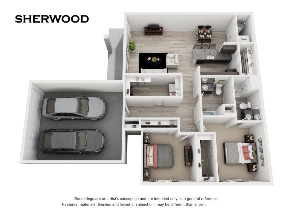 Modelo de apartamento: Sherwood$1,3502 Dormitorios, 2 Baños, 1290 sq ftNo Disponible![]()