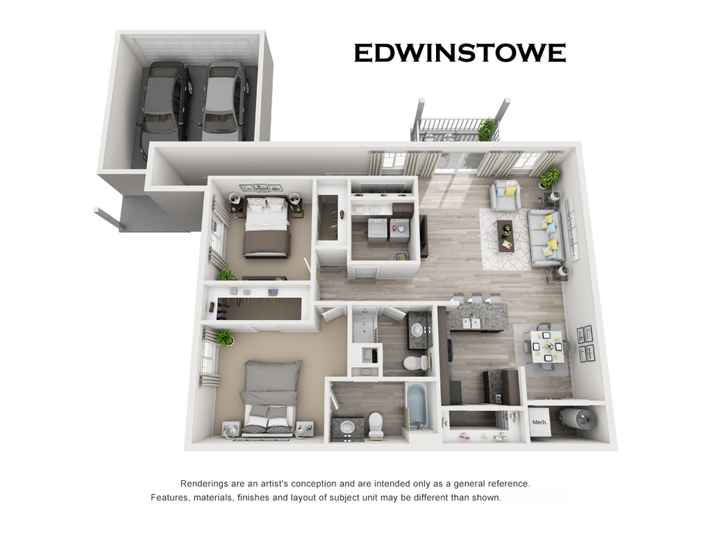 2 Dormitorios, 2 Baños, 1384 pies²Galería del Modelo