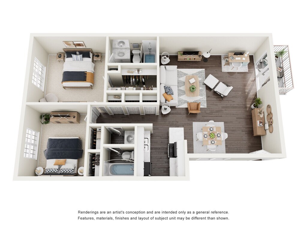 2 Dormitorios, 2 Baños, 1250 pies²Disponible AhoraEl más grandeEsta opción tiene las unidades más grandes para este modeloGalería del Modelo