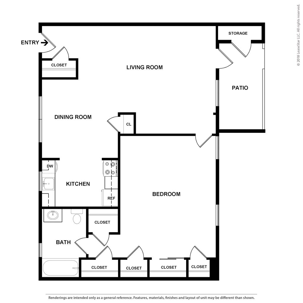 1 Dormitorio, 1 Baño, 877 pies²Disponible AhoraGalería del Modelo