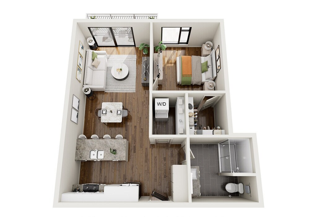 1 Dormitorio, 1 Baño, 638-646 pies²Galería del Modelo