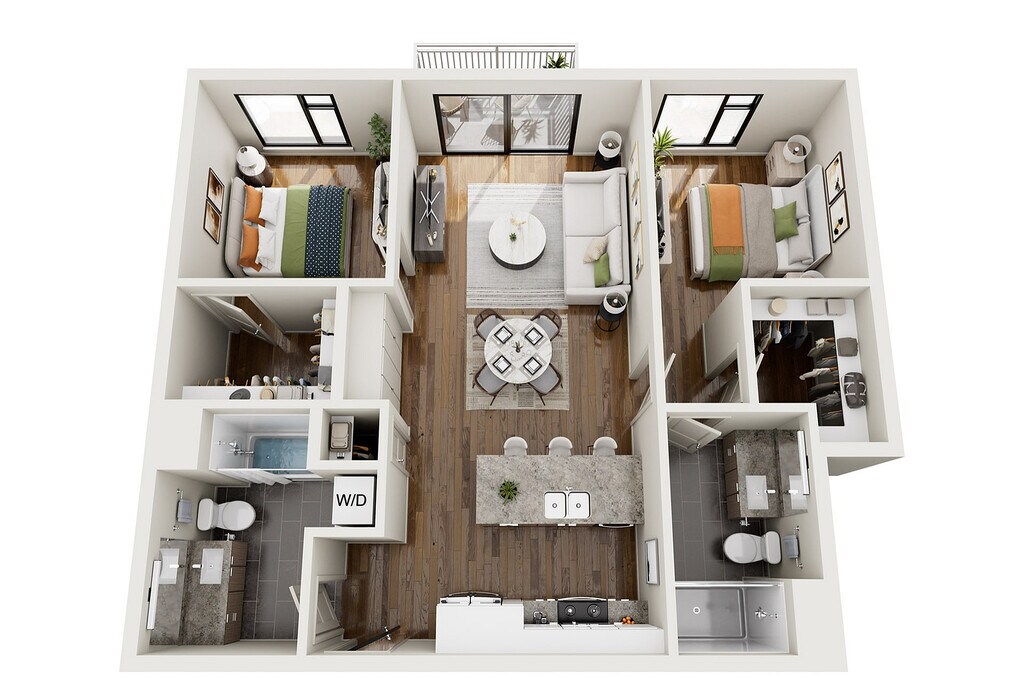 2 Dormitorios, 2 Baños, 983 pies²Galería del Modelo