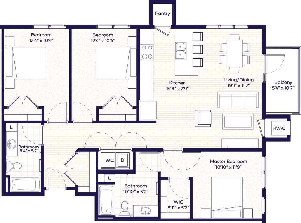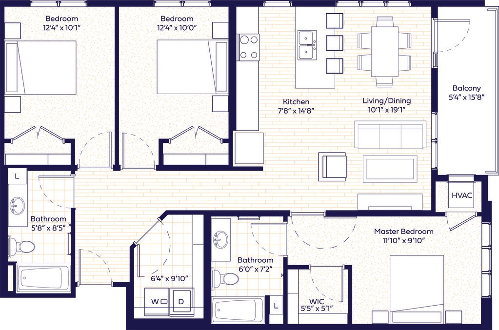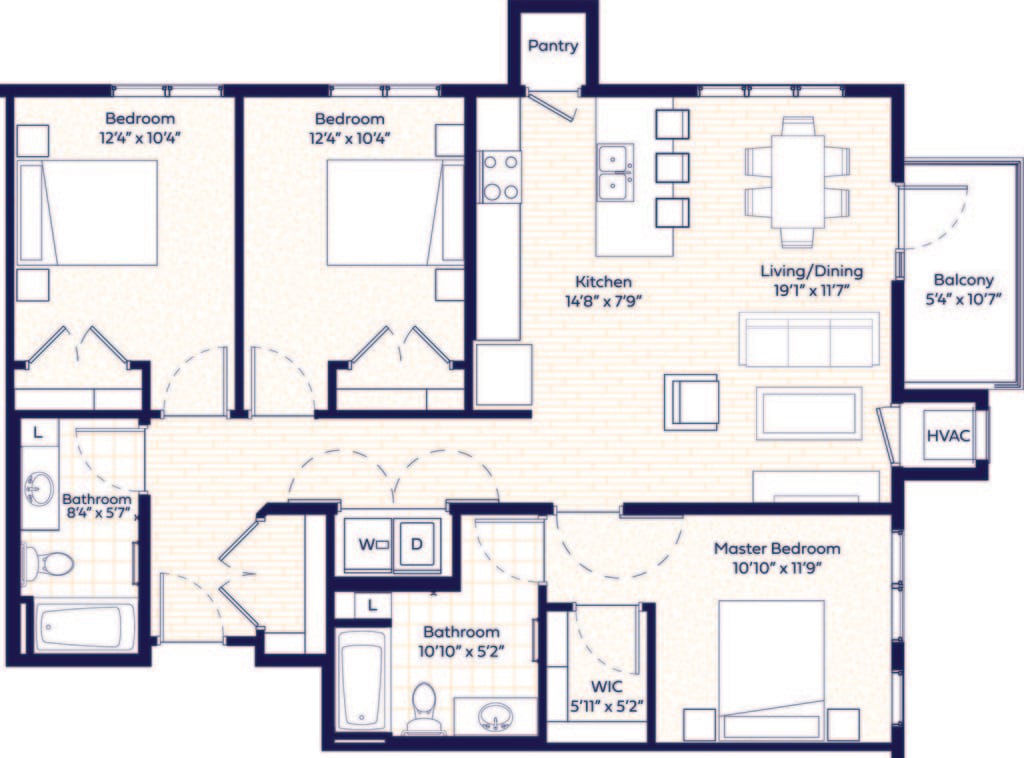 Modelo de apartamento: 3 Bedroom-Market3 Dormitorios, 2 Baños, 1268 sq ftNo Disponible![]()