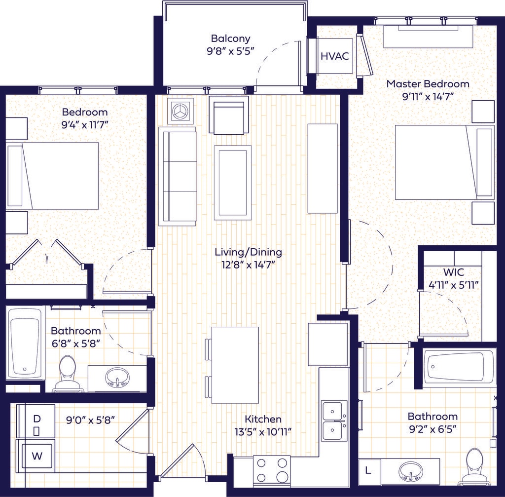 Modelo de apartamento: 2 Bedroom-Market2 Dormitorios, 2 Baños, 996 sq ftNo Disponible![]()