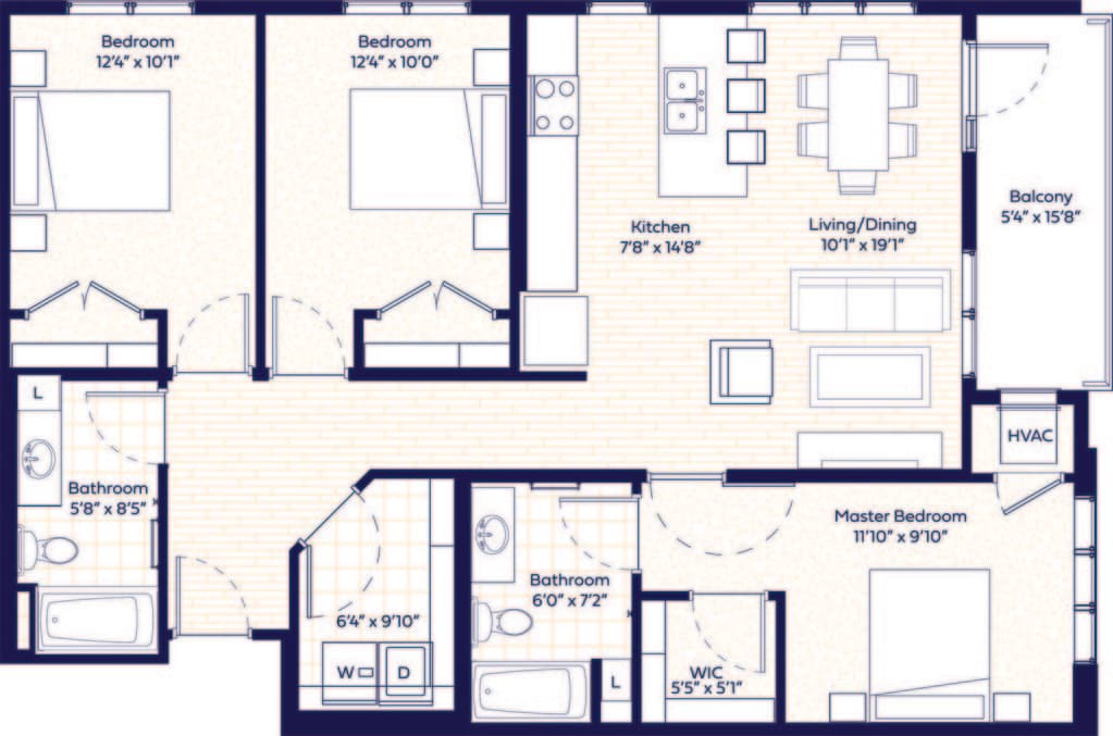 3 Bedroom-TC - Plano 2 Unidad de apartamento: 120Modelo de apartamento: 3 Bedroom-TC3 Dormitorios, 2 Baños, 1268 sq ftDisponible March 6, 20263 Bedroom-Market